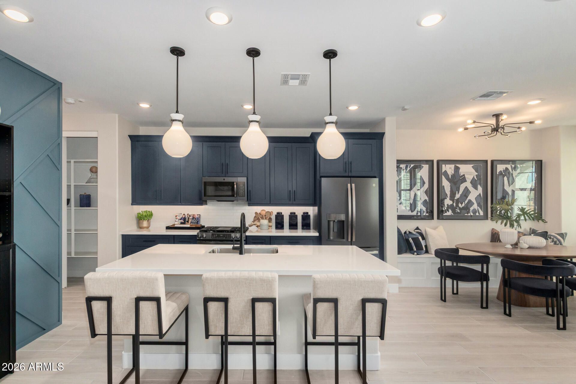 The ONLY new homes near SURPRISE CITY CENTER! Modern townhomes with gorgeous modern touches PRIME LOCATION WITHIN WALKING DISTANCE TO SHOPPING, RESTAURANTS, BALLPARK AND CITY CENTER! This thoughtfully designed home offers a functional and stylish layout. The heart of the home is the kitchen which features gorgeous MODERN BROWN CABINETS, striking WHITE TILE BACKSPLASH, TILE Flooring in all the right places! a flexible space that can easily function as a home office, study, PRIVATE FRONT PATIO features pavers and entry gate. This community features FANTASTIC AMENITIES such as HEATED COMMUNITY POOL, Dog Park, BBQ Grills, Playground, and Ramadas throughout.