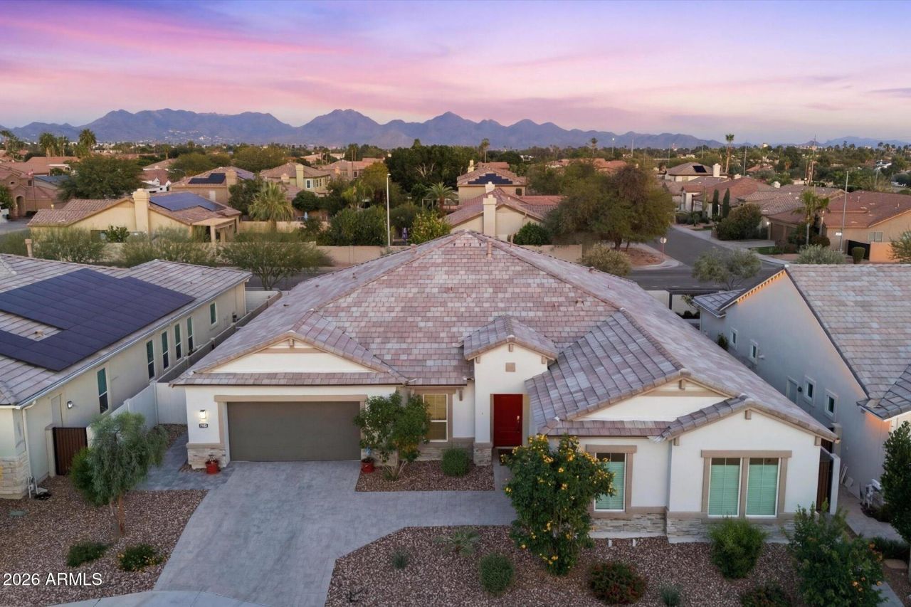 Welcome to this modern luxury single-level home in the gated community of Arabella w beautiful mountain views. The thoughtful floor plan is filled w abundant light & anchored by a chefs kitchen w premium appls, LG fridge, under-island storage & seamless flow into the family rm w gas fireplace and formal dining. Offers 3 Bdrms including a Jr suite, spacious primary w blackout blinds, a versatile den/game space, 3 baths, & a private attached casita w living area, bedroom & bath - for guests or multigenerational living. Step outside to a newly added resort-style backyard featuring a heated 50-ft lap pool w beach entry, spa, travertine pavers, & the advanced IntelliChem automated chemical management system, designed to automatically monitor and balance water chemistry. Additional highlights include multiple R/O filtration systems, a 2-car extended-depth garage w epoxy flooring & utility sink, and a separate 1-car garage wired for a 220V EV charger.