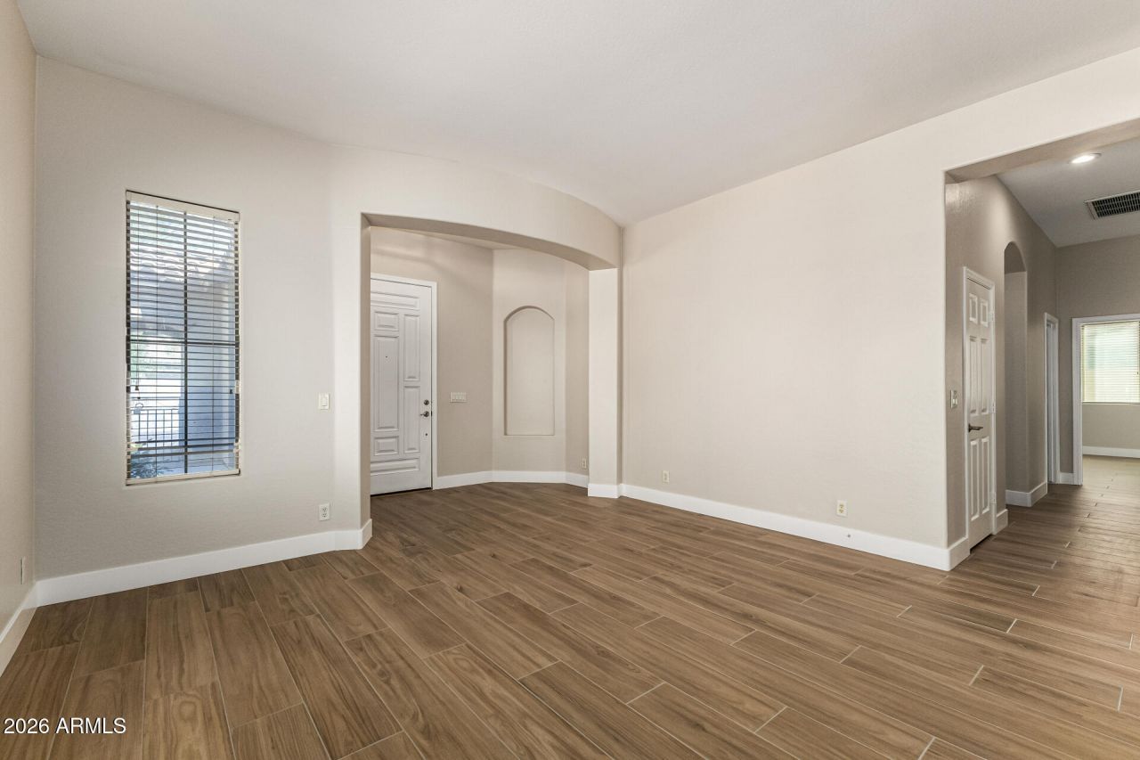 Welcome to your corner lot 4 bedroom, 2 bathroom, 3 car garage home in the highly sought after Paseo Trail neighborhood. This beautifully remodeled home features fresh white kitchen cabinetry, designer quartz countertops, stainless steel appliances, and stunning wood plank tile flooring throughout, all complemented by modern five inch baseboards. The kitchen sits at the heart of the home, creating an ideal space for gathering and entertaining. Enjoy a thoughtfully designed split floor plan with a generously sized primary suite offering abundant natural light, a large walk in shower, a soaking tub, dual vanities, and a spacious walk in closet. The three additional bedrooms are well sized and positioned to provide comfort and privacy for family or guests.Step outside to your own private retreat where the backyard feels like a mini resort, complete with a sparkling PebbleTec pool and low maintenance artificial turf. This home truly checks all the boxes and is ready for its next owner to enjoy.