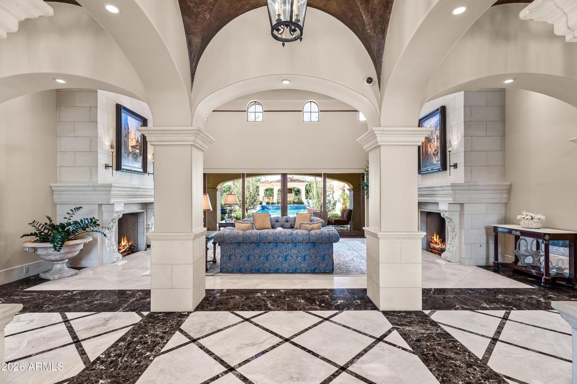 Premier 1-acre lot with breathtaking Camelback Mountain views. Experience elevated desert living in this gated Paradise Valley estate, where architectural details abound: soaring ceilings, arched entryways, multiple gas fireplaces, and stunning ceiling treatments featuring skylights, wood paneling, and exposed beams. The main residence offers an expansive open-concept layout with a grand great room, formal dining area, and a private study with custom built-ins. Entertain effortlessly with a chefs kitchen, wet bar, wine cellar, and game room, or unwind in the dedicated exercise room complete with sauna. A detached casita provides exceptional flexibility and privacy, featuring its own living room with fireplace, full kitchen, and bedroom with en-suite bath-ideal for guests or extended stay. Step outside to an extraordinary backyard retreat showcasing sweeping mountain views, tranquil fountains, and a custom pool and spa enhanced by dramatic fire and water features. Enjoy Arizona living at its finest with a ramada, covered patio, and private putting green-perfect for year-round relaxation and entertaining. Additional highlights include a 4-car garage and a premier location just minutes from world-class resorts, spas, golf, hiking, fine dining, and luxury shopping.
