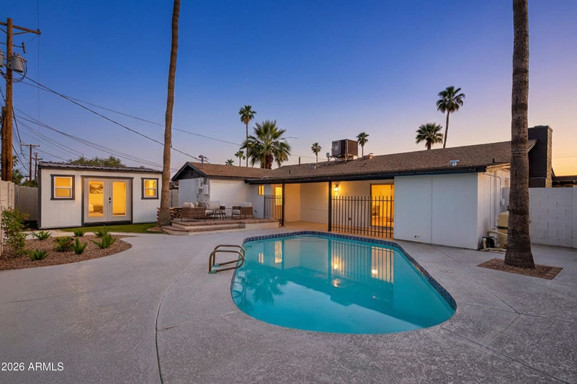 Beautifully remodeled 4-bedroom, 2-bath home in a prime Scottsdale location, offering the perfect blend of style and functionality. The open-concept layout creates a seamless flow between living, dining, and kitchen spaces. Ideal for both everyday living and entertaining. Step outside to your private backyard oasis featuring a sparkling pool, perfect for relaxing or hosting gatherings. A standout feature is the detached casita, providing versatile space for a home office, gym, guest quarters, or creative studio. Thoughtfully updated throughout, this home delivers modern comfort, flexibility, and indoor-outdoor living at its best.
