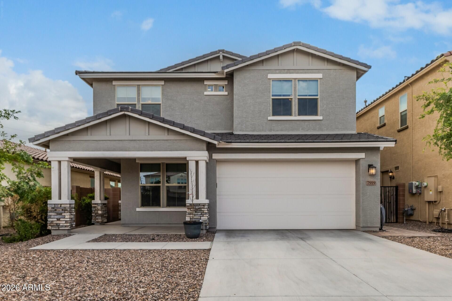 Tucked at the end of a quiet cul-de-sac, this nearly new stunner offers the space, style, & lifestyle youre searching for. 5 bedrooms, den, loft, & over 3,000 sq ft means room for everyone & then some. A gourmet kitchen steals the show with high-end finishes, abundant natural light, & all appliances included. The open-concept layout flows seamlessly to an extended-length covered patio & backyard complete with turf & a playset. Oversized bedrooms, flexible bonus room options, an extended 2-car garage, solar panels, & thoughtful upgrades throughout elevate every inch of this home. Minutes from the 81-acre Heroes Regional Park, a community park, top-rated schools, Westgate, State Farm Stadium, great shopping & dining. This one has it all.
